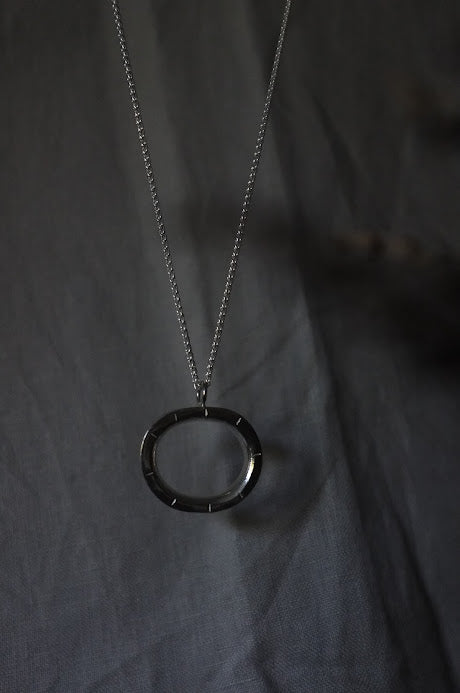 Starting out as a simple bar in my scrap pile, I have shaped and marked this oval pendant to make it a simple, but bold, statement piece.